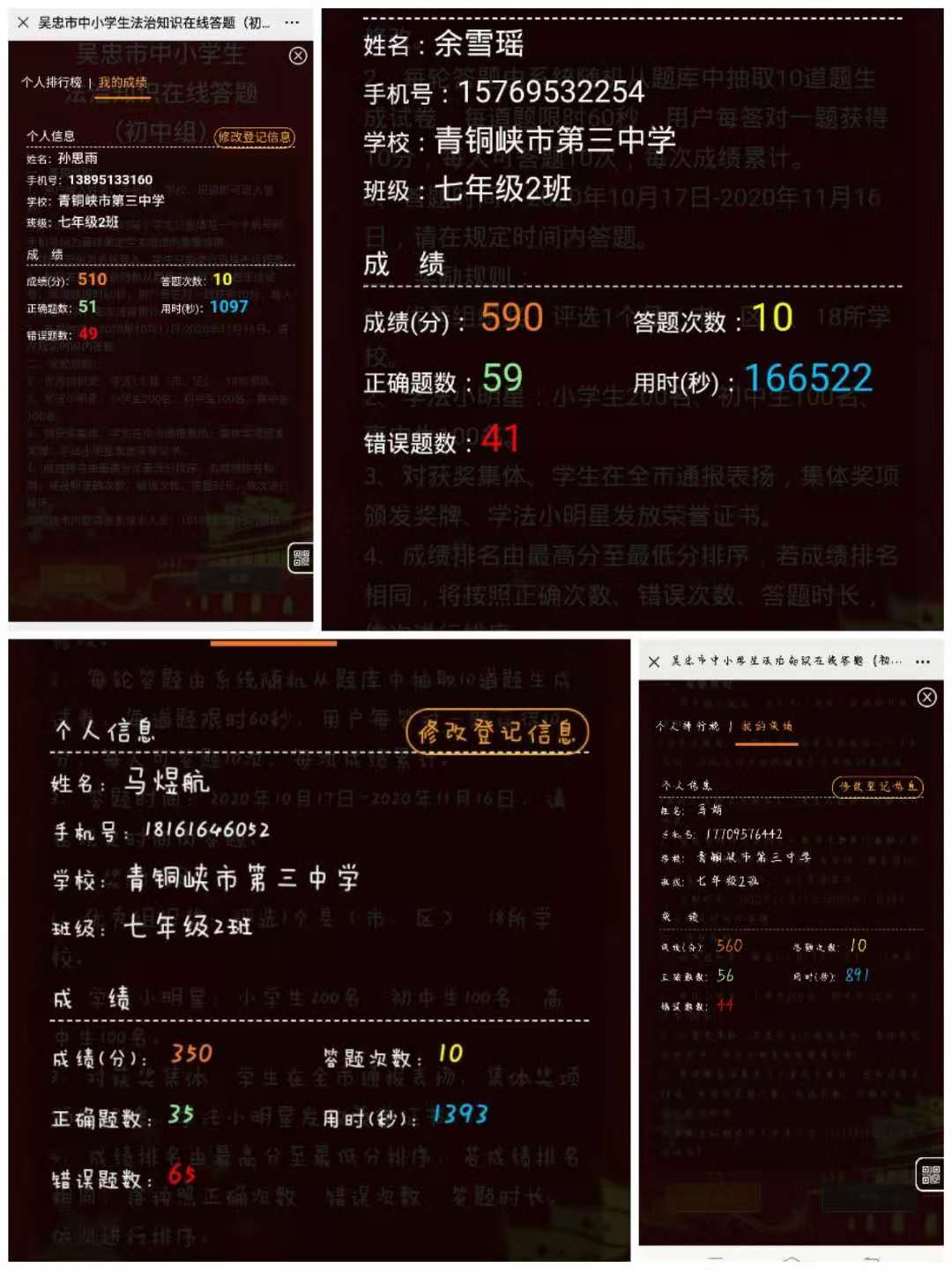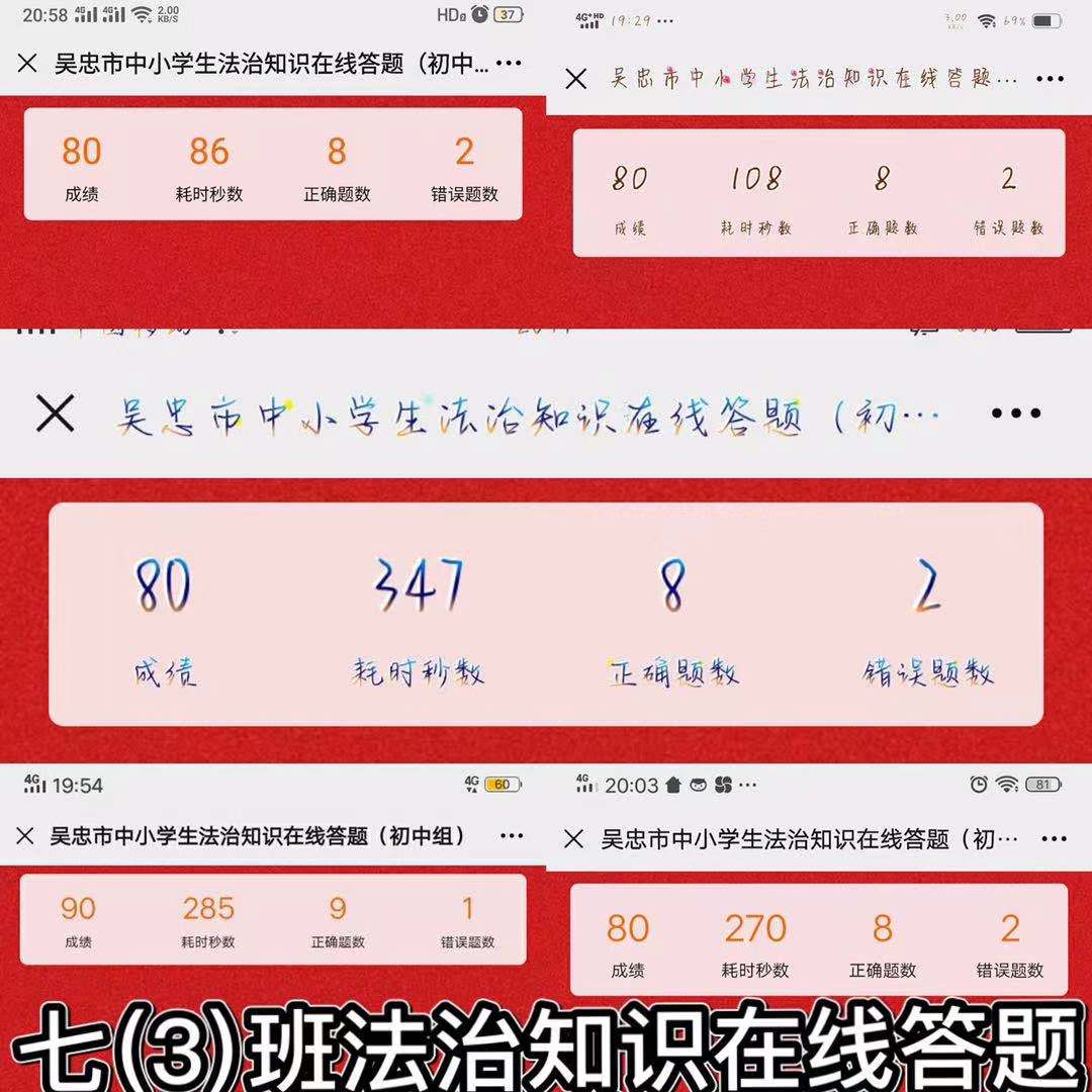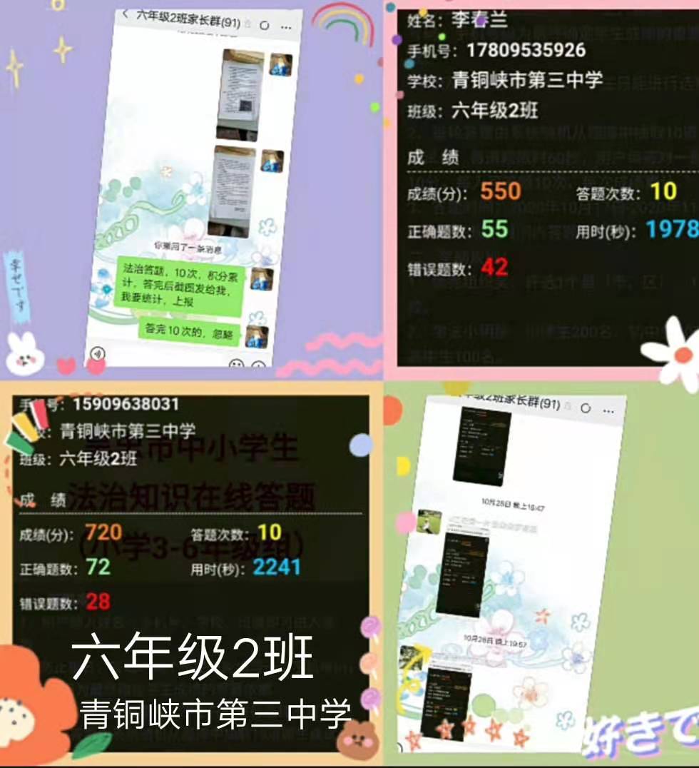 为了进一步激发中小学生的学法热情,增长法律知识,在全市中小学中营造学法守法用法的氛围,争做遵纪守法的文明市民,大力弘扬宪法精神,促进法治校园建设,创建区级依法治校示范校,努力构建平安、文明、和谐的法治校园。青铜峡市三中于2020年10月20日开始认真组织2-9年级学生参加2020法治知识在线答题活动。