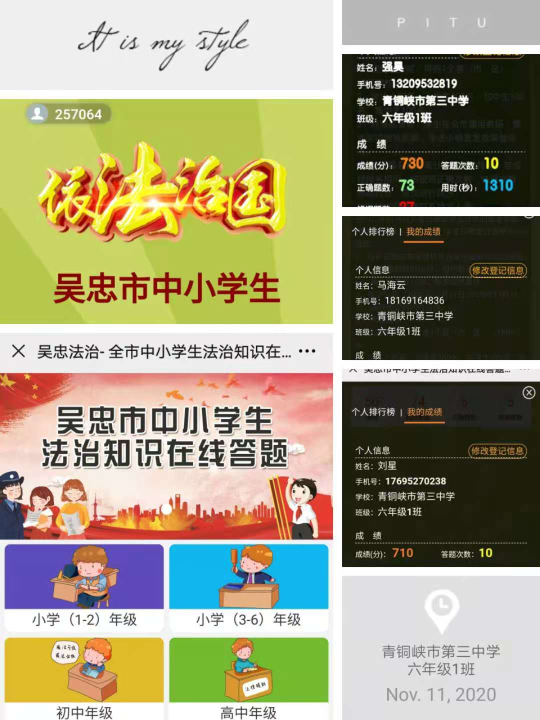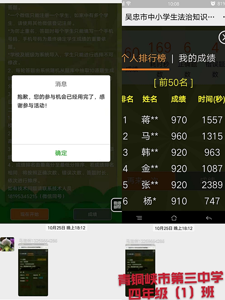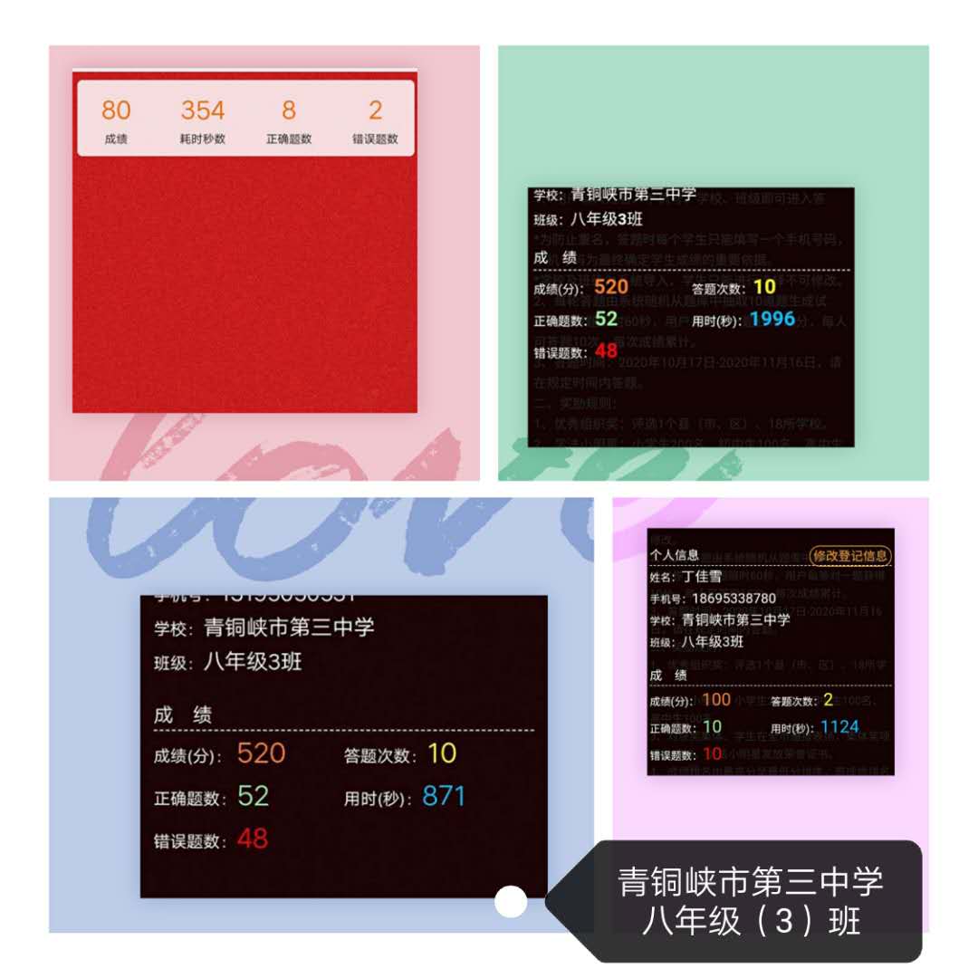 为了进一步激发中小学生的学法热情,增长法律知识,在全市中小学中营造学法守法用法的氛围,争做遵纪守法的文明市民,大力弘扬宪法精神,促进法治校园建设,创建区级依法治校示范校,努力构建平安、文明、和谐的法治校园。青铜峡市三中于2020年10月20日开始认真组织2-9年级学生参加2020法治知识在线答题活动。