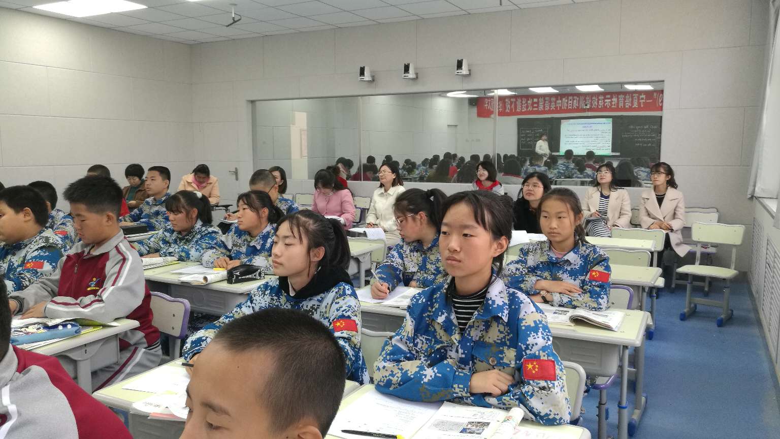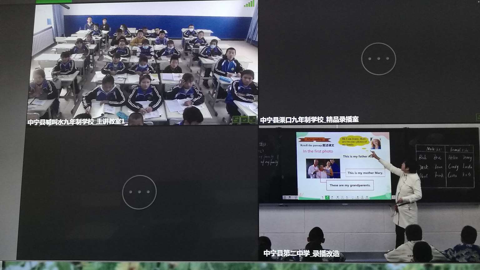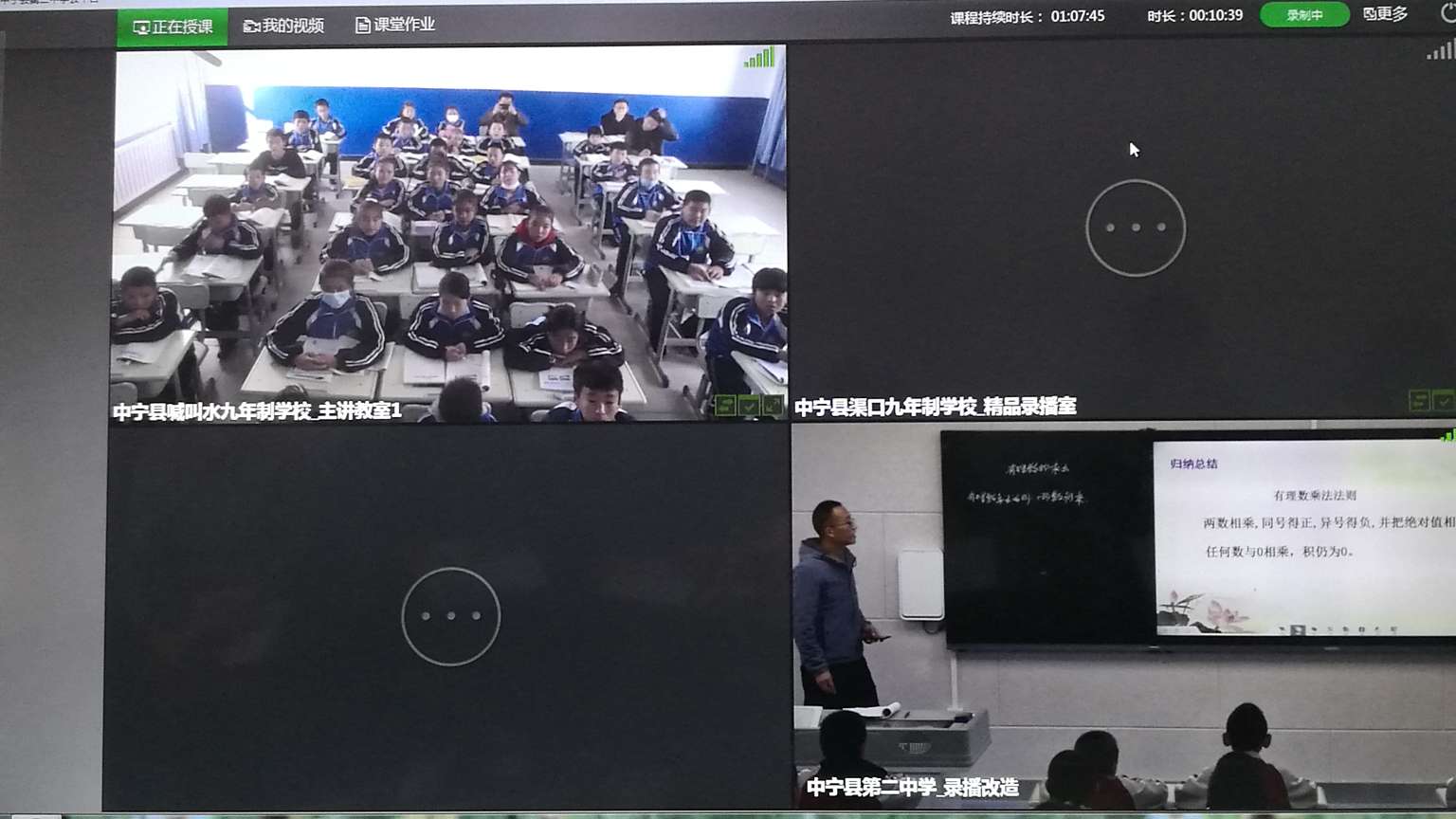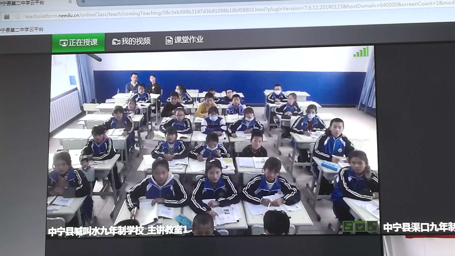 本次活动中宁二中共安排四名学科教师进行在线直播课堂教学,喊叫水九年制学校和舟塔九年制学校同时参与。