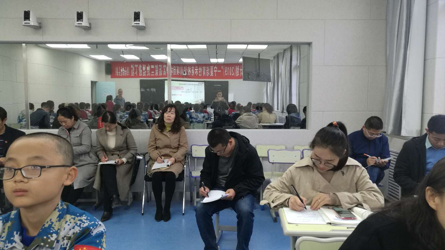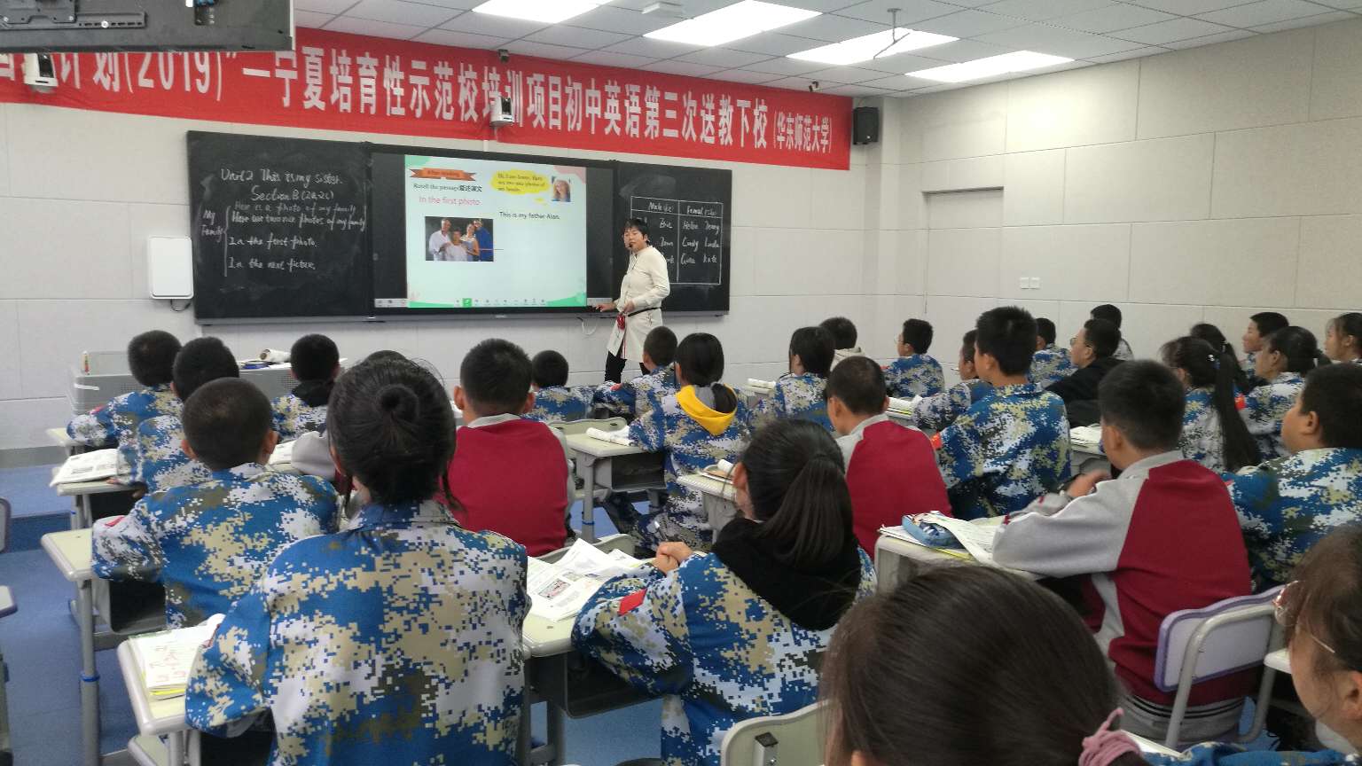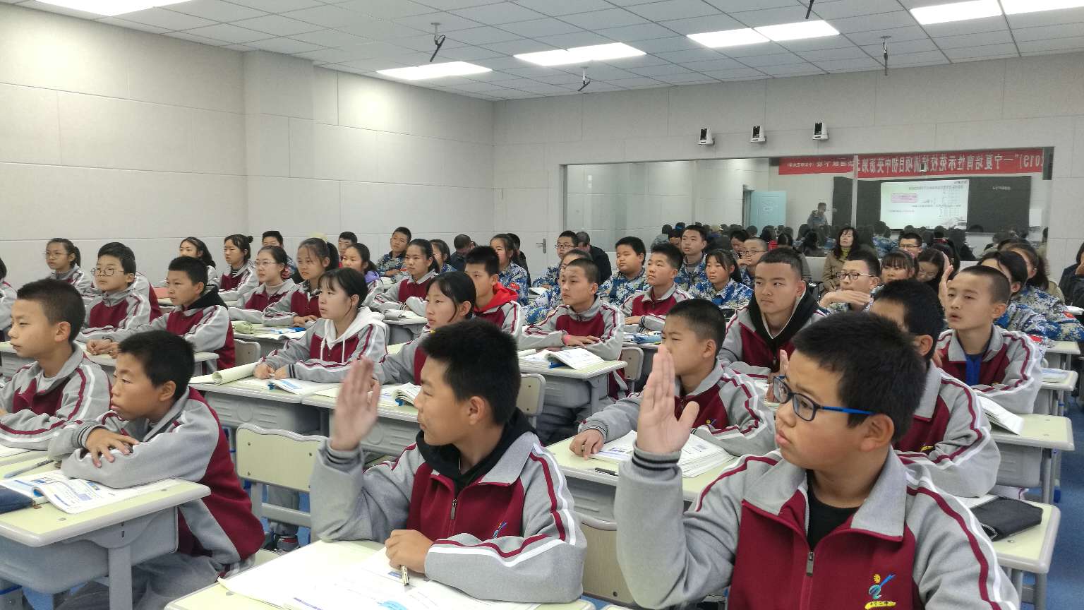 本次活动中宁二中共安排四名学科教师进行在线直播课堂教学,喊叫水九年制学校和舟塔九年制学校同时参与。