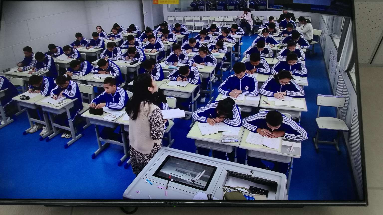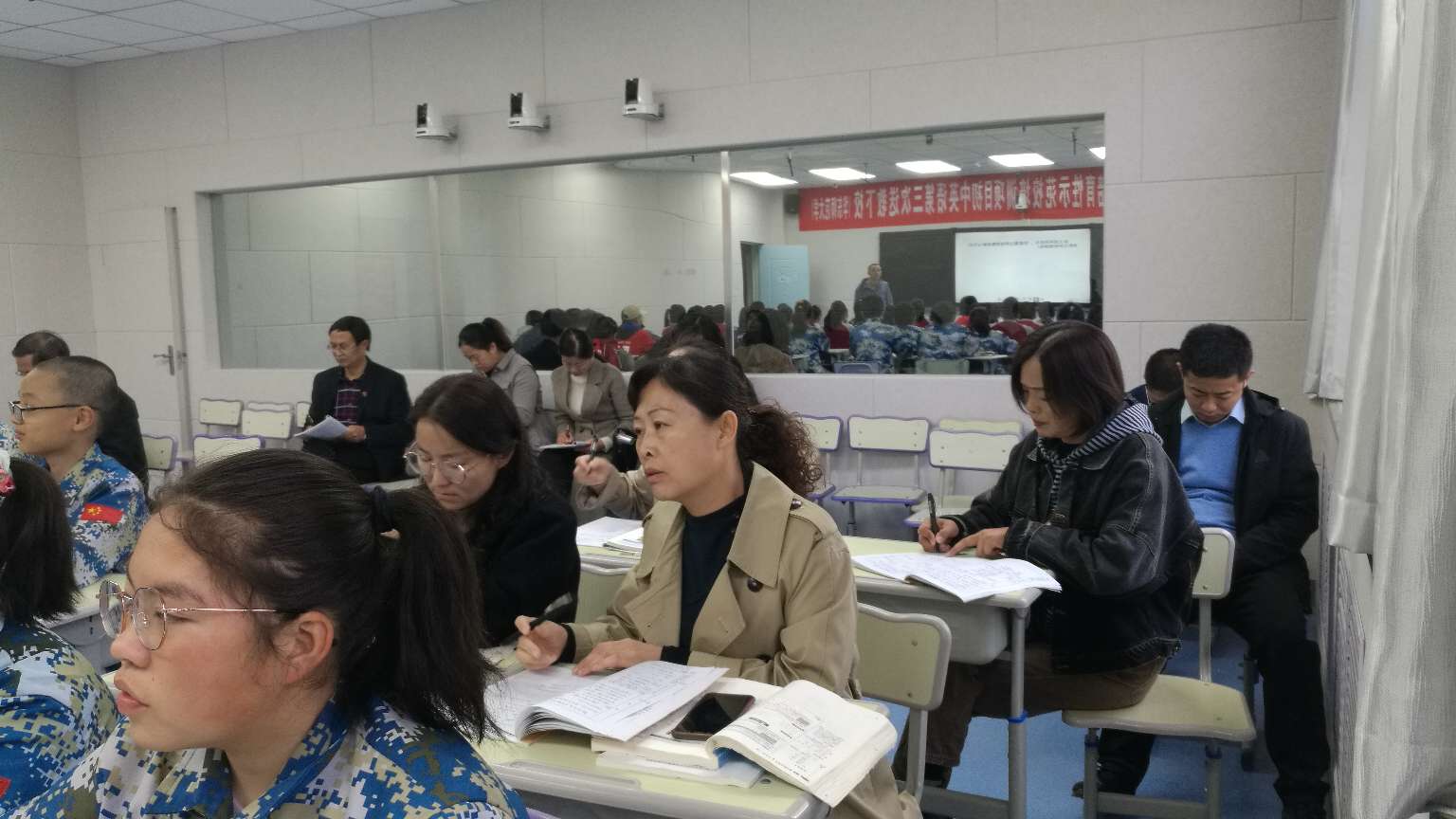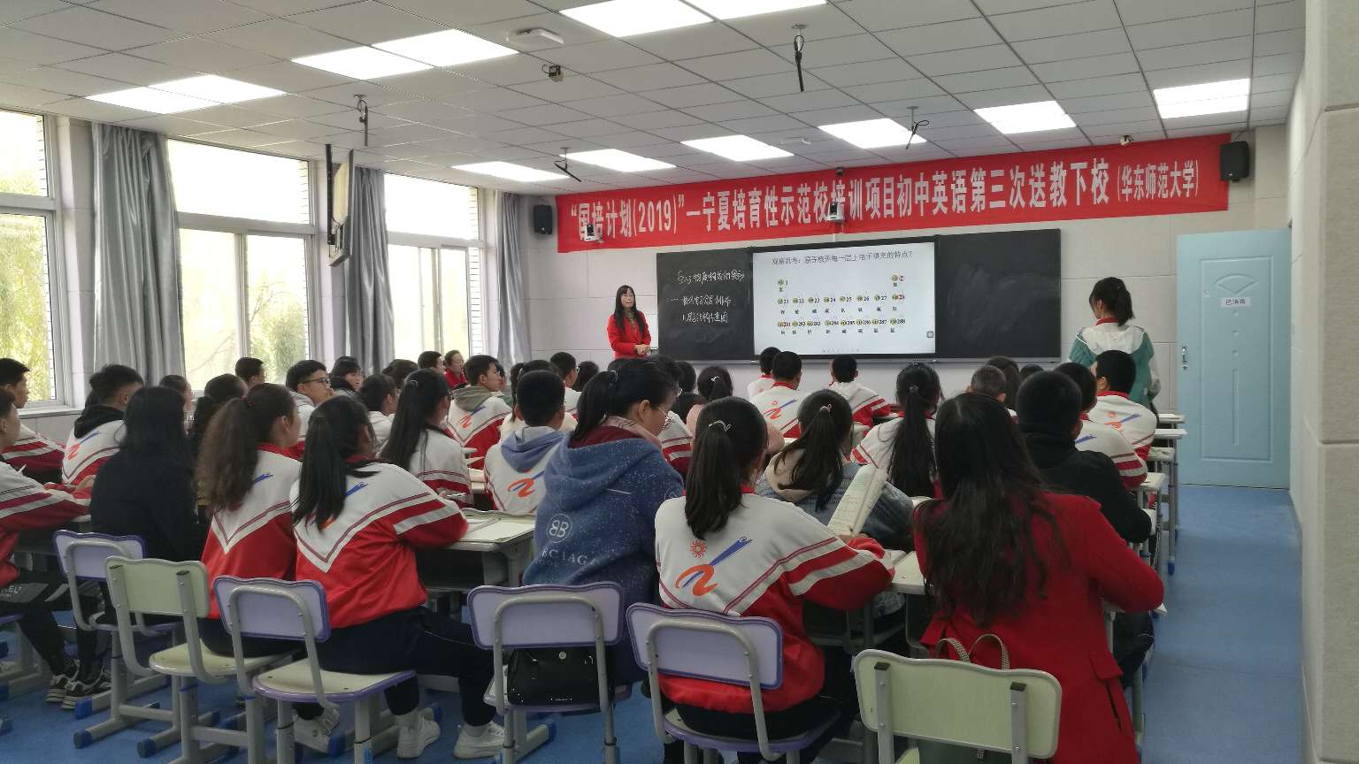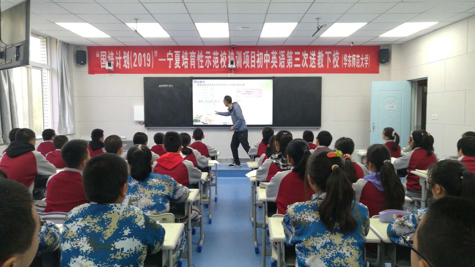 本次活动中宁二中共安排四名学科教师进行在线直播课堂教学,喊叫水九年制学校和舟塔九年制学校同时参与。