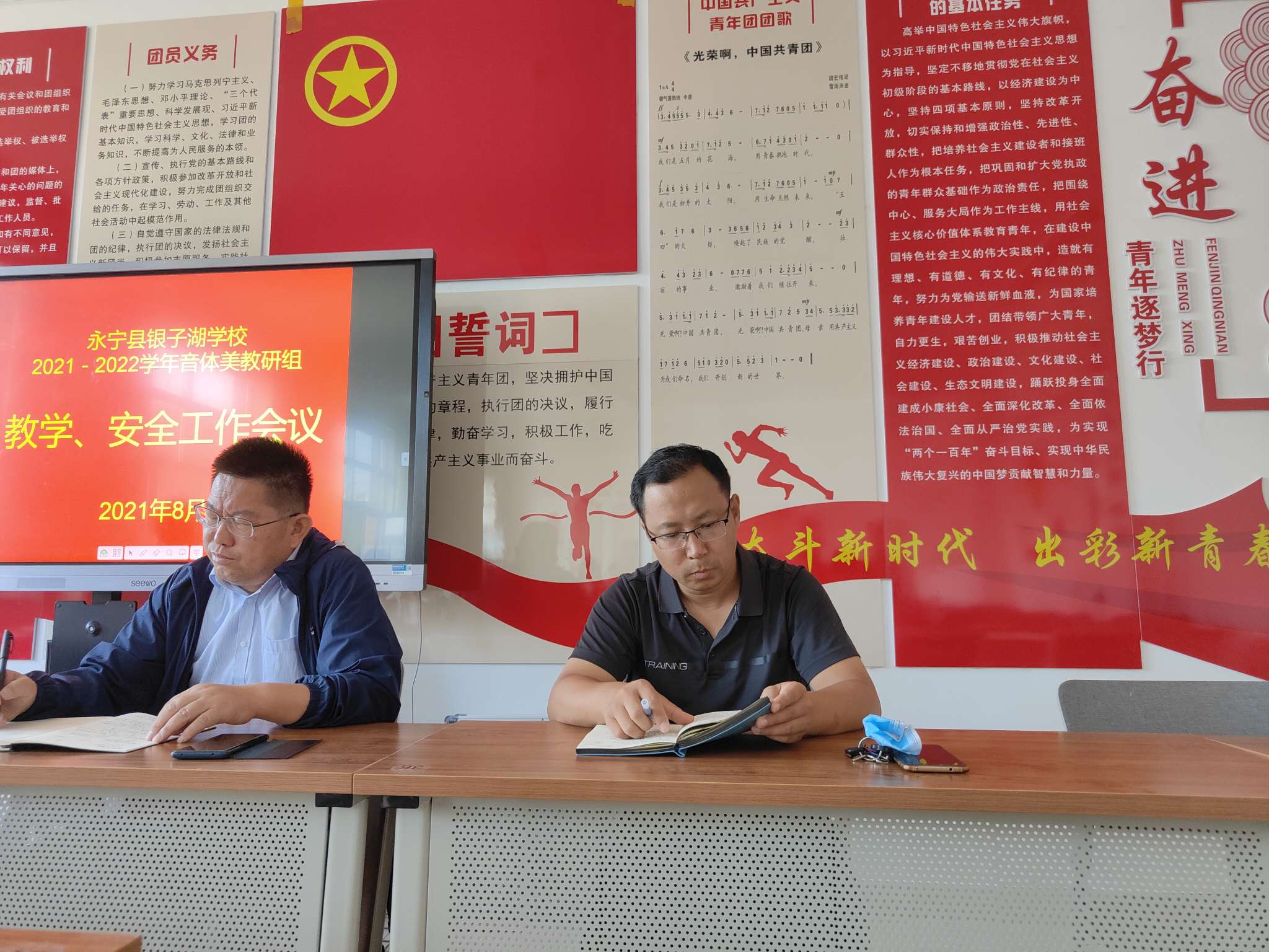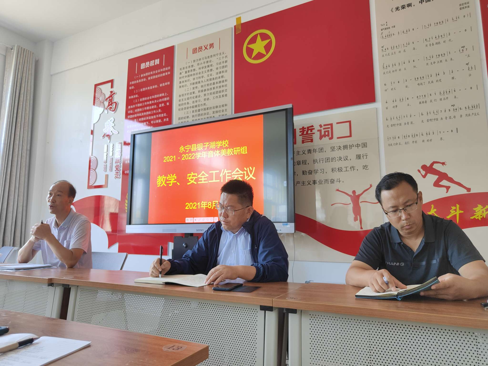 2021年8月31日,永宁县银子湖学校音体美教研组开展了本学期第一次教研会议。会议上就教学,安全方面做了深入全面的要求。