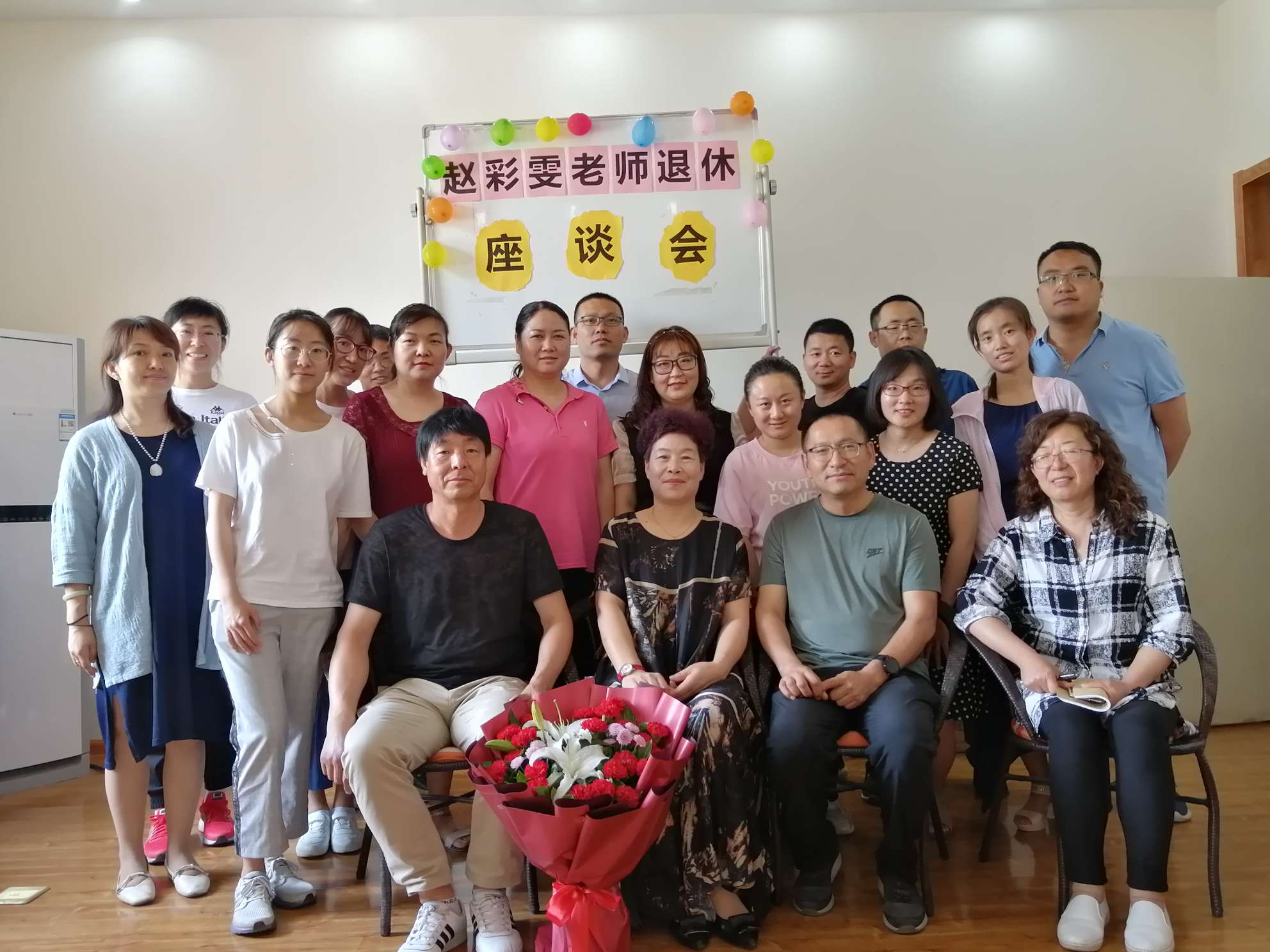 伴随着不舍和祝福,我们和赵老师合影留念。衷心地希望赵老师在丰富多彩的退休生活之余,继续为学校的发展献计献策,也欢迎您常回家看看!