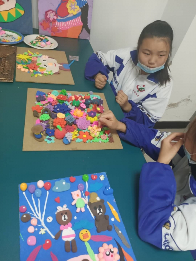 学校开展“五育并举”活动,美术班的学生正在活动。