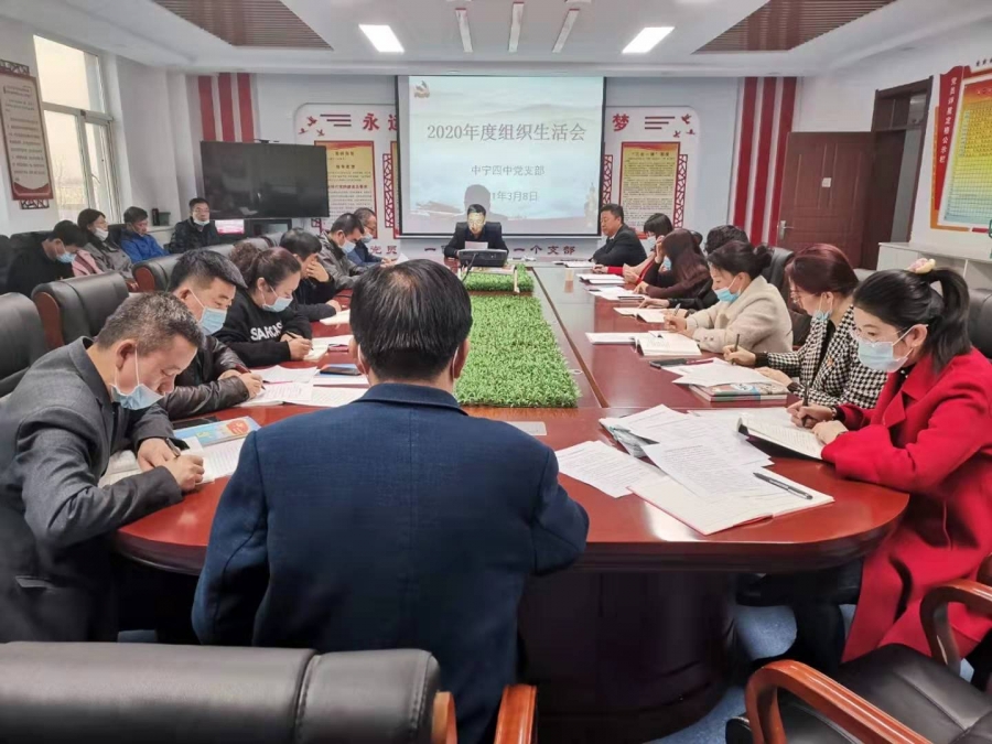 按照县教育工委统一部署,3月8日上午,中宁四中党支部召开2020年度“学理论、强担当、提质量”组织生活会,并对党员进行了民主评议。中宁四中全体党员参加了会议。